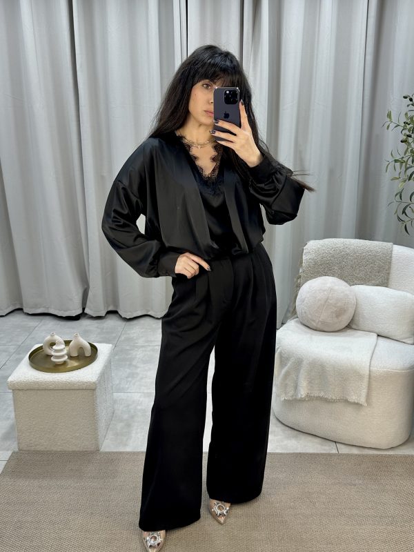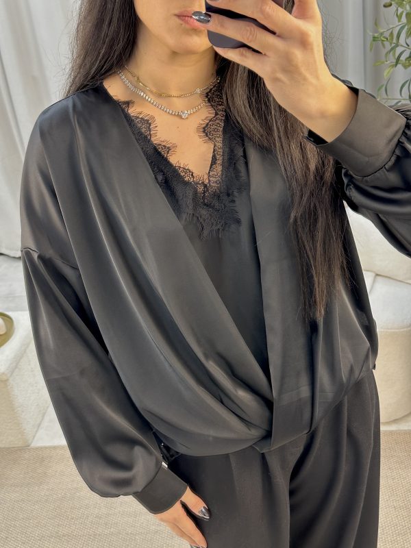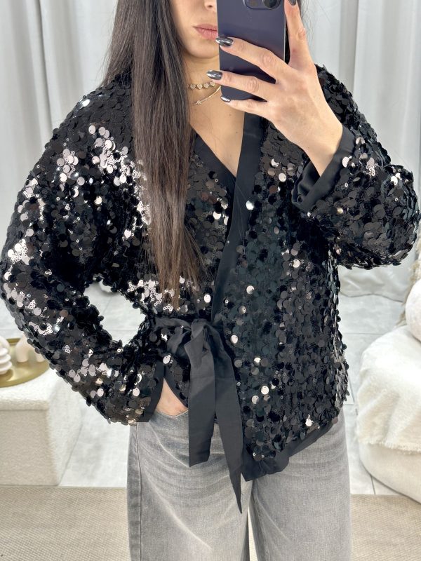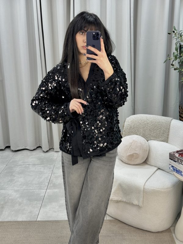 Κρουαζέ μπλούζα με παγέτες μαύρο