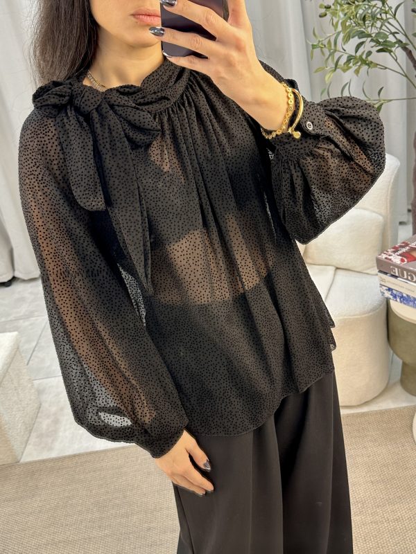 Πουκάμισο πουά με φιόγκο στο λαιμό