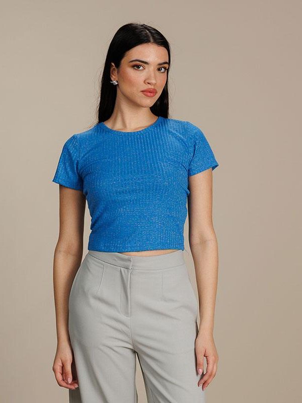 Crop top κοντομάνικο με λούρεξ κλωστή